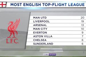 一步之遥!英格兰顶级联赛冠军数:曼联20冠 利物浦19冠&即将追平